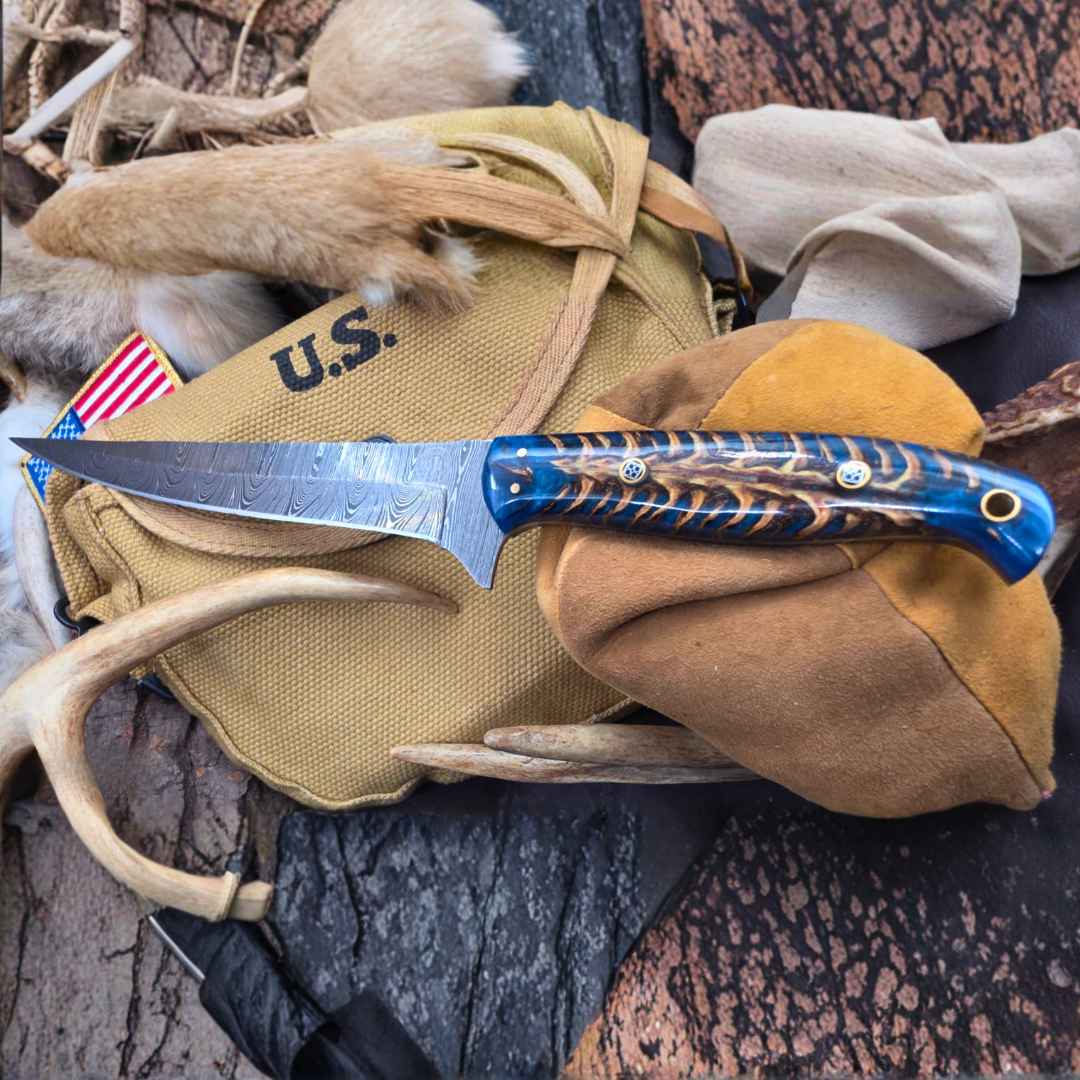 Damascus Fillet Knife Blue Pine Cone Handle