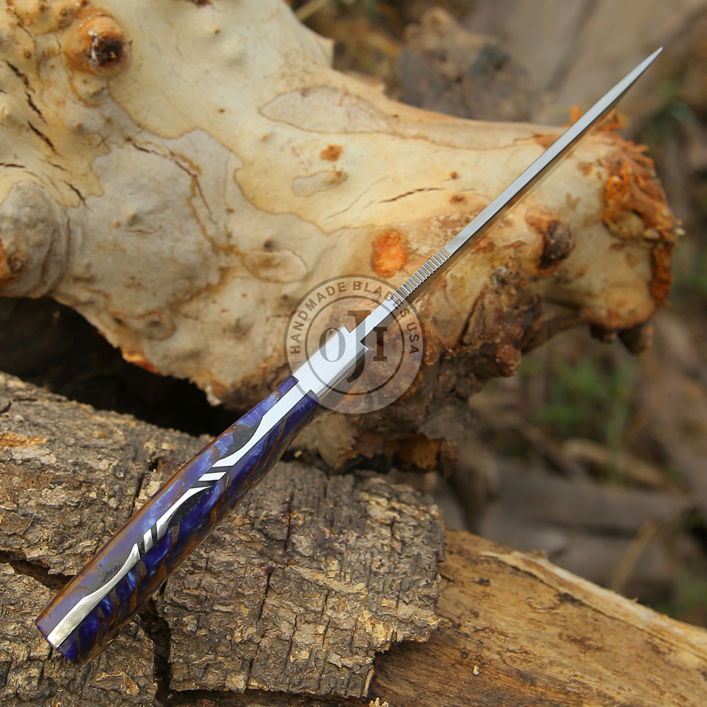 AUS10 STEEL SKINNER Hunting Knife Steel Bolster Blue Pine Cone Handle